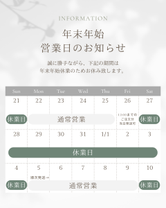 ・年始開始 2026年1月5日(月)より順次発送させていただきます。