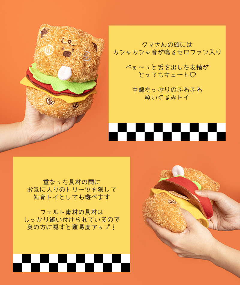 べ~っと舌を出したかわいいクマさんバーガーのぬいぐるみトイ☆ |