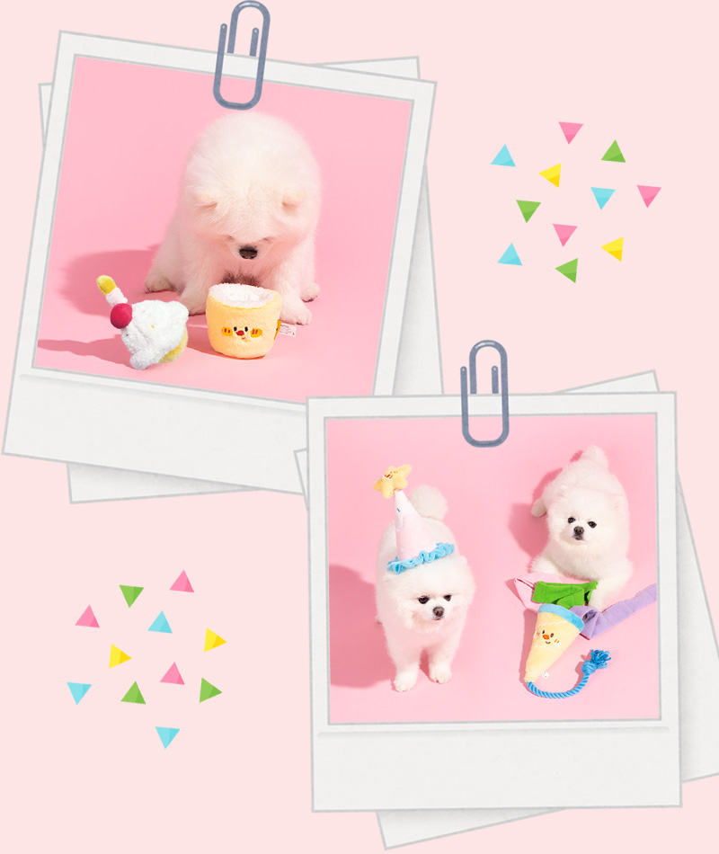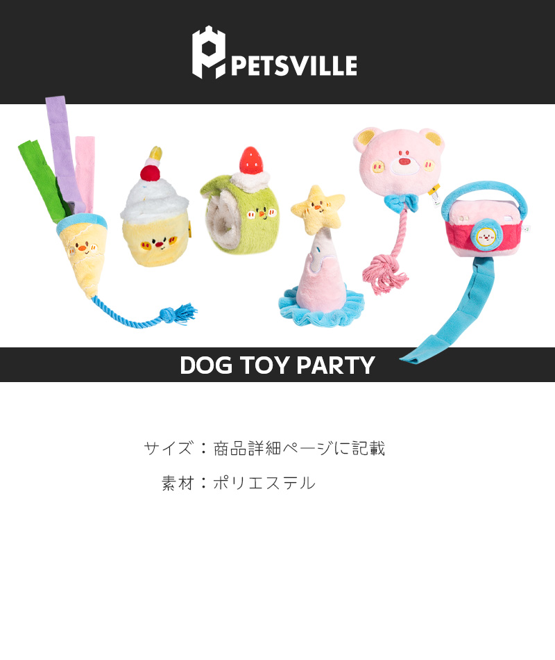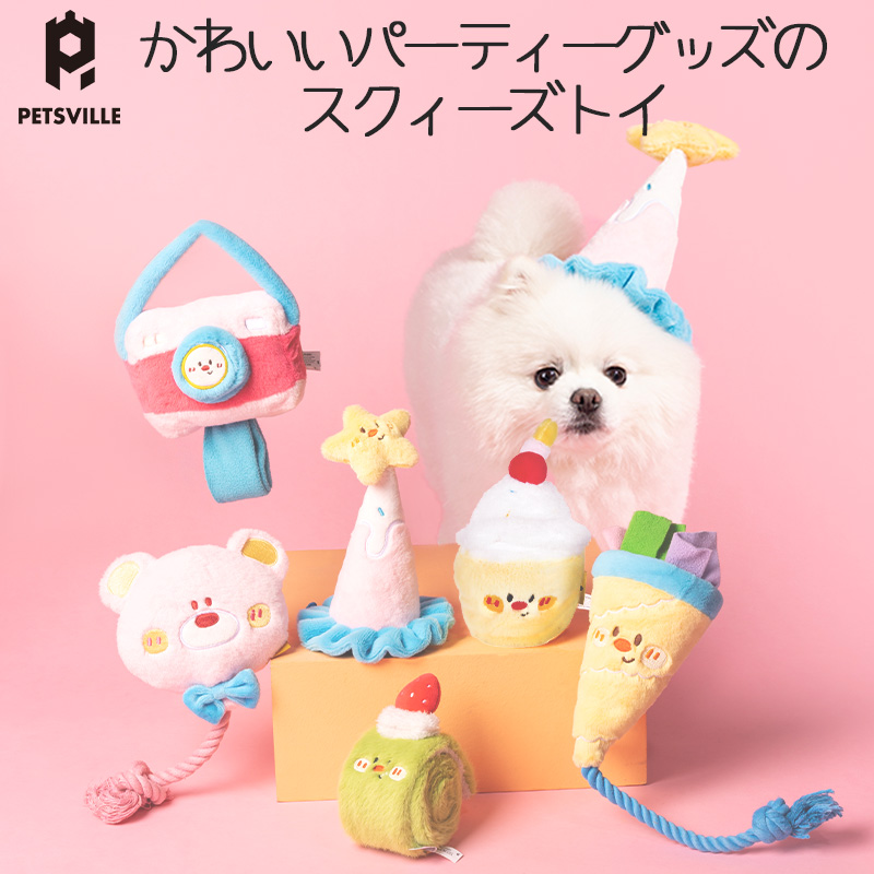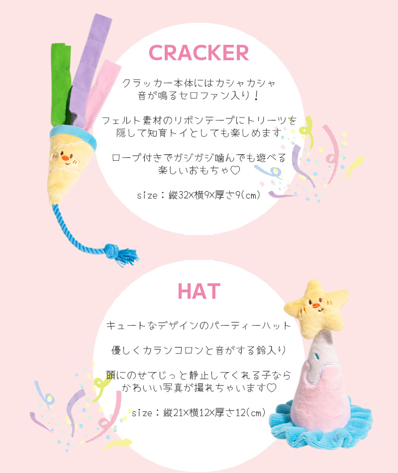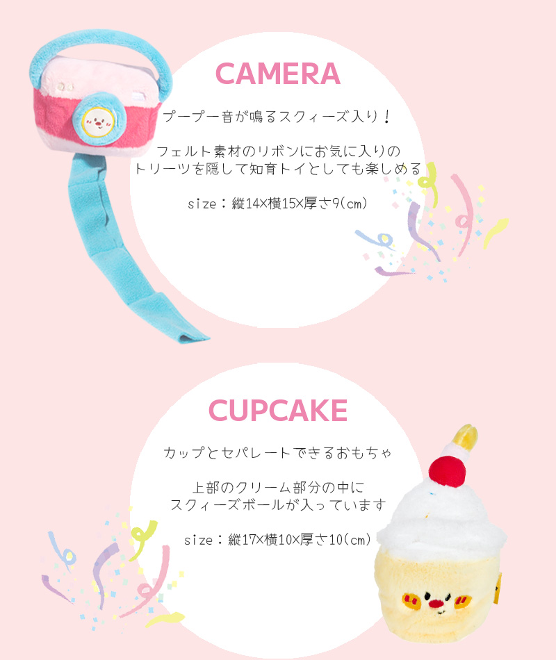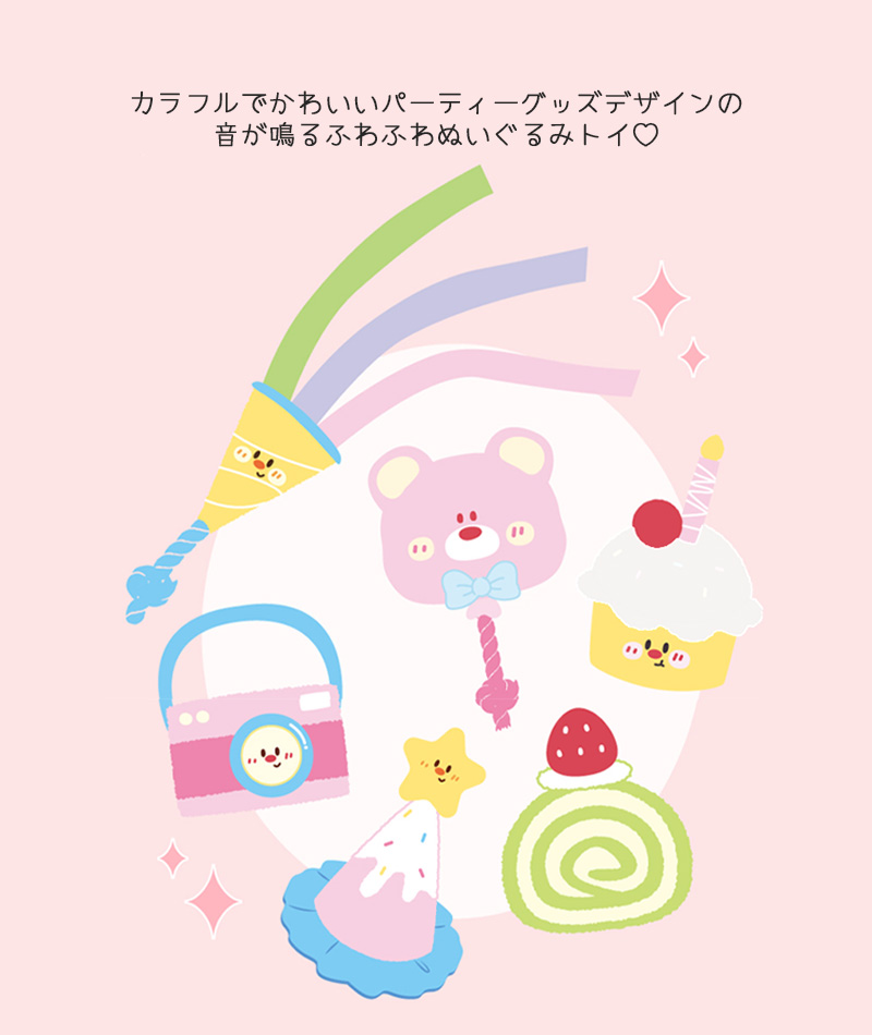 キュートなパーティーグッズをモチーフにしたぬいぐるみトイです。 |