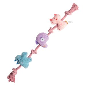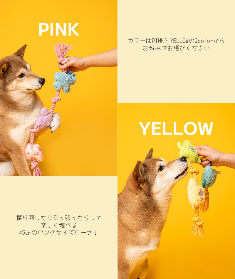 カラフルでPOPなデザインのぬいぐるみ付コットンロープトイです。 |