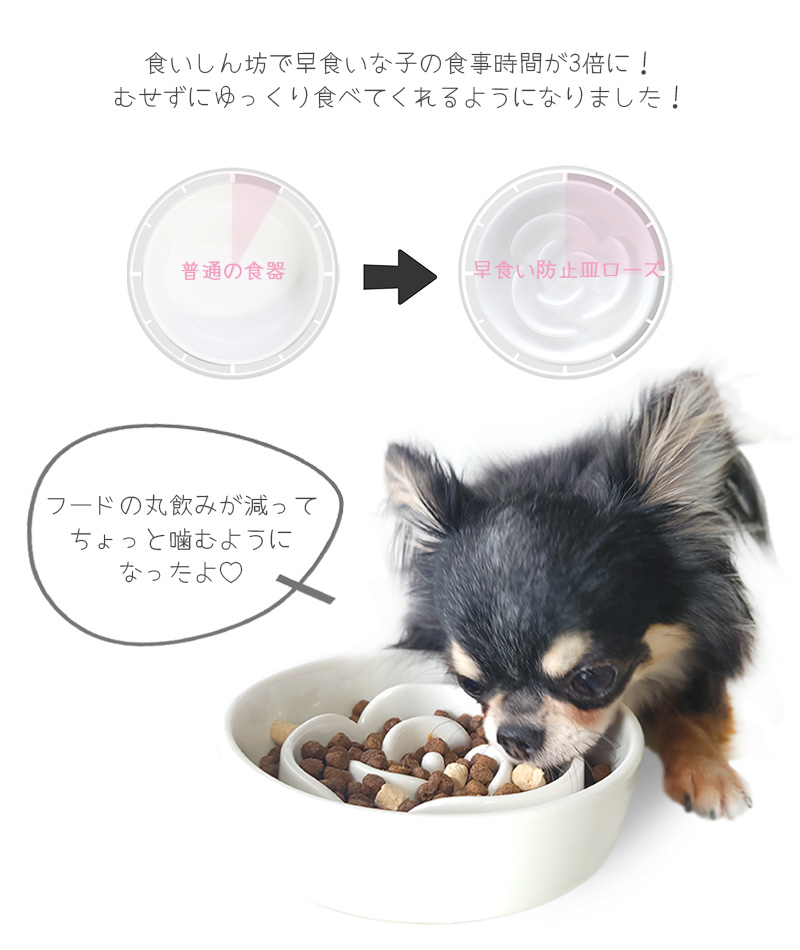 ごはんが大好きな食いしん坊わんちゃん・ねこちゃんの早食いにお悩みの飼い主さんにおすすめ! |